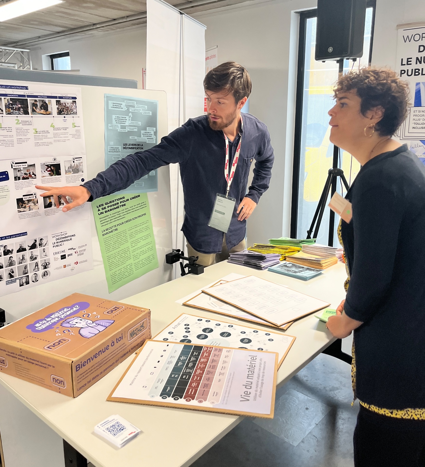 - Des kiosques à projets : déambulation libre entre différents kiosques présentant des projets et démarches concrets où le design a été appliqué à des sujets de transition numérique, écologique et sociale.