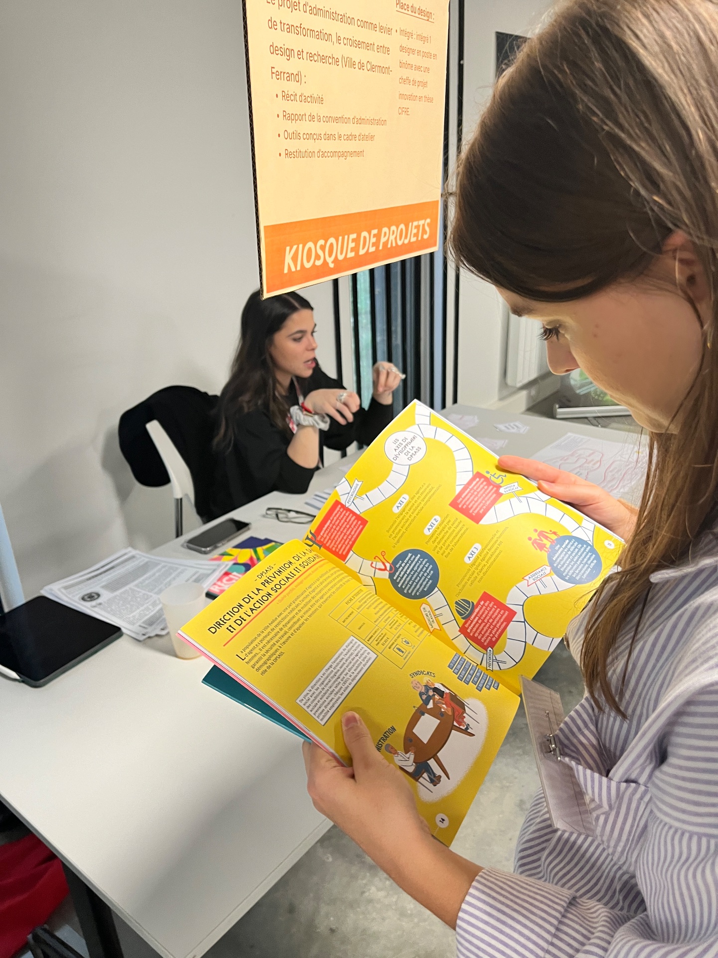 - Un atelier pour jouer au jeu "Le Petit Jeu du design de service public" réalisé par la DITP, un excellent prétexte pour discuter sur les méthodes et outils de design rencontrés dans nos services publics et des “pièges” ou limites de certains (design thinking, personas, etc).
