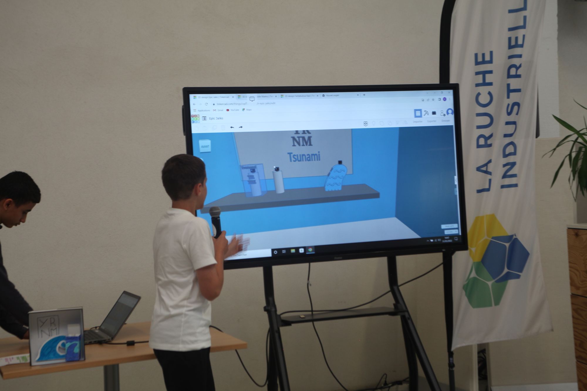 Ce travail préalable leur a ensuite permis de cadrer leur création. Ils ont ensuite pu créer un premier visuel du flacon et de son emballage mais également un support de communication accompagnant la sortie du produit. Grâce à des questionnaires, les collégiens ont pu tester l’esthétique, la praticité et la personnalité de leur première maquette sur des potentiels clients : un entraperçu de l’expérience utilisateur. A partir de ces retours, les élèves ont finalement amélioré leur projet jusqu’à l’élaboration d’un prototype final qu’ils ont défendu lors de la restitution de ce 31 mai 2022 à la Ruche Industrielle.