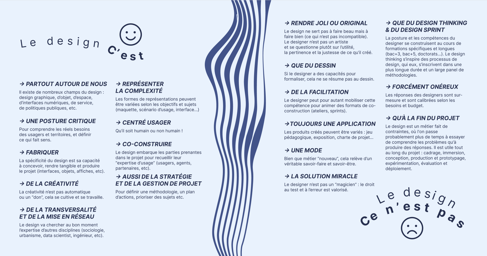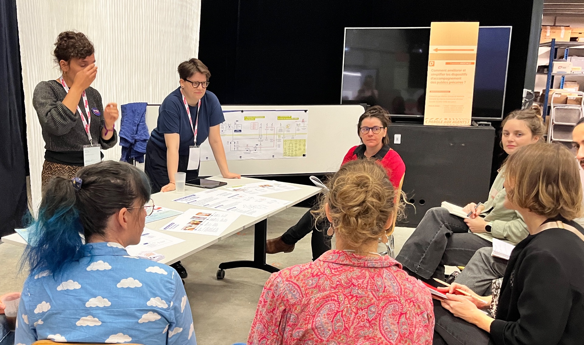 - Un atelier pour jouer au jeu "Le Petit Jeu du design de service public" réalisé par la DITP, un excellent prétexte pour discuter sur les méthodes et outils de design rencontrés dans nos services publics et des “pièges” ou limites de certains (design thinking, personas, etc).